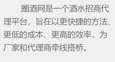 圈酒招商網是繼糖酒會之后的招商模式,為酒廠等生產經銷企業(yè)搭建一個更好、更快的酒水招商平臺